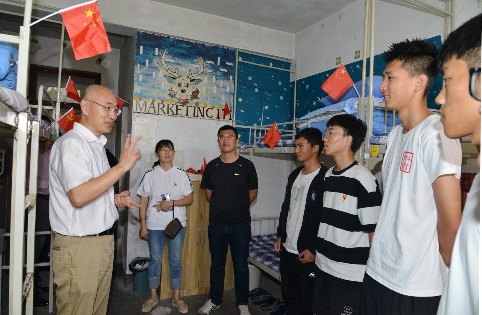 金风送爽,九州欢歌。在庆祝中华人民共和国成立72周年华诞之际,为了解学生假期情况,关心学生生活条件,10月1日上午,校长陈克正在学校有关部门及mg冰球突破豪华版网址负责同志的陪同下深入走访mg冰球突破豪华版网址学生宿舍。