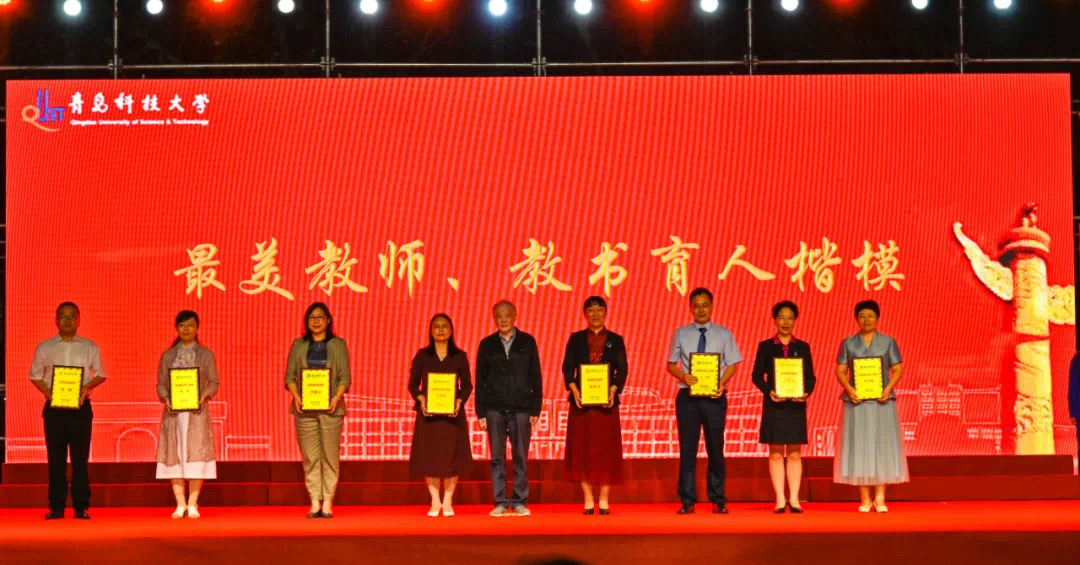近日,mg冰球突破豪华版网址“科大情 强国梦”2021年迎新生、庆国庆师生文艺晚会于崂山校区操场举行。晚会中,学校对2021年“最美教师、教书育人楷模”、学校“第十四届十大杰出青年”和2021年“市级以上各种荣誉称号”获得者颁奖,冰球官网教师董华、索琪、吕承超受表彰。