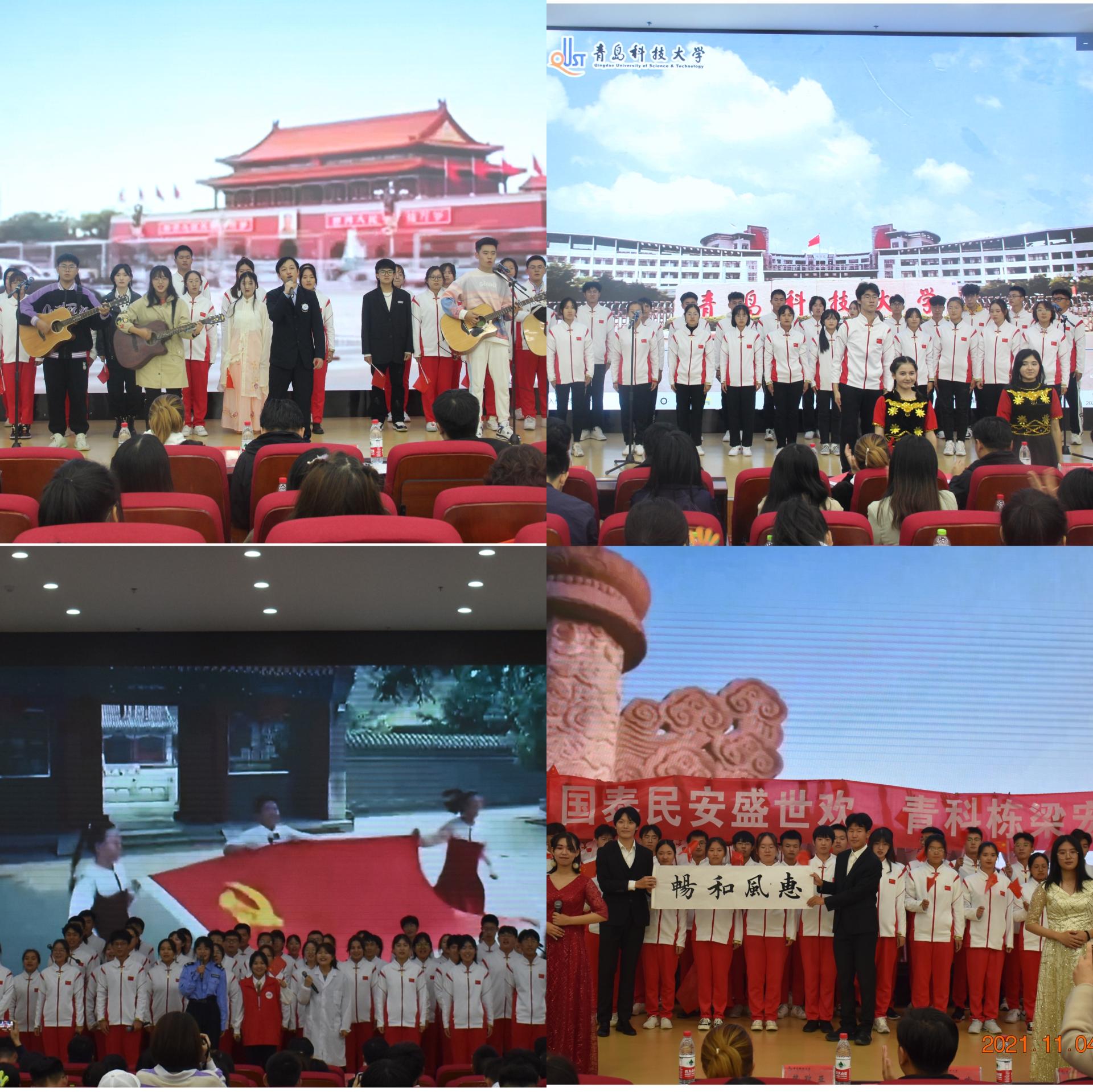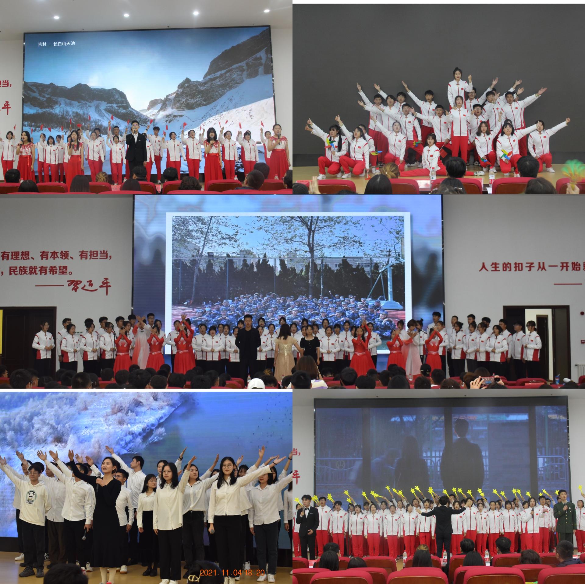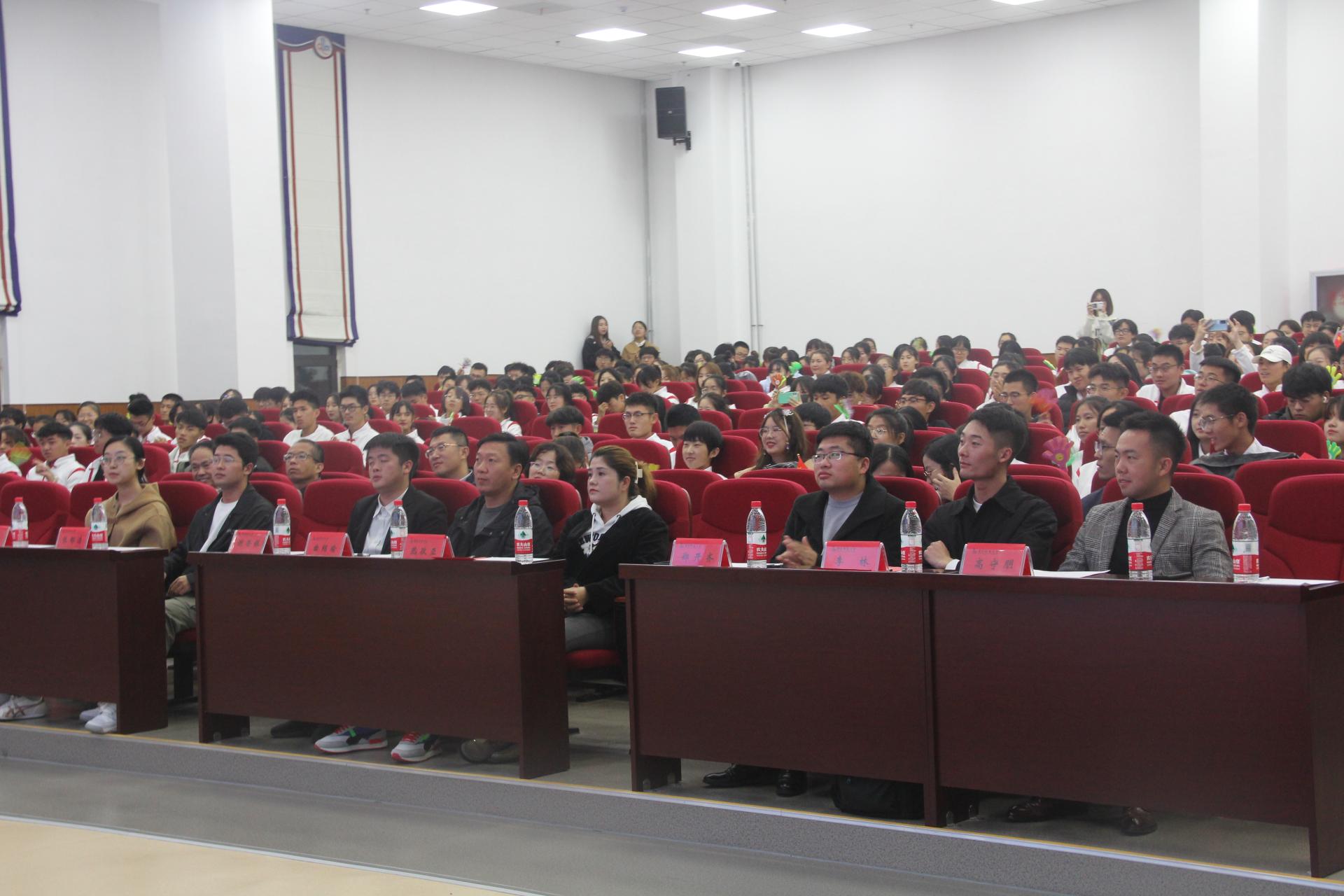 旗帜飘扬映红色初心,歌声嘹亮颂百年华章。为激发新生家国主义情怀,强化爱校荣校教育,增强班级凝聚力与集体荣誉感,11月4日晚,mg冰球突破豪华版网址2021年“歌唱祖国”青春歌会暨第十一届学生合唱大赛于崂山校区北苑讲学厅隆重举行。mg冰球突破豪华版网址党委副书记兼副院长刘跃宁,2021级班主任杨皎平、赵慧娟、王小兵、孙福平及全体专兼职辅导员出席比赛现场,校团委、学生处及兄弟学院老师担任评委,各年级学生代表近500余人一同观看比赛。