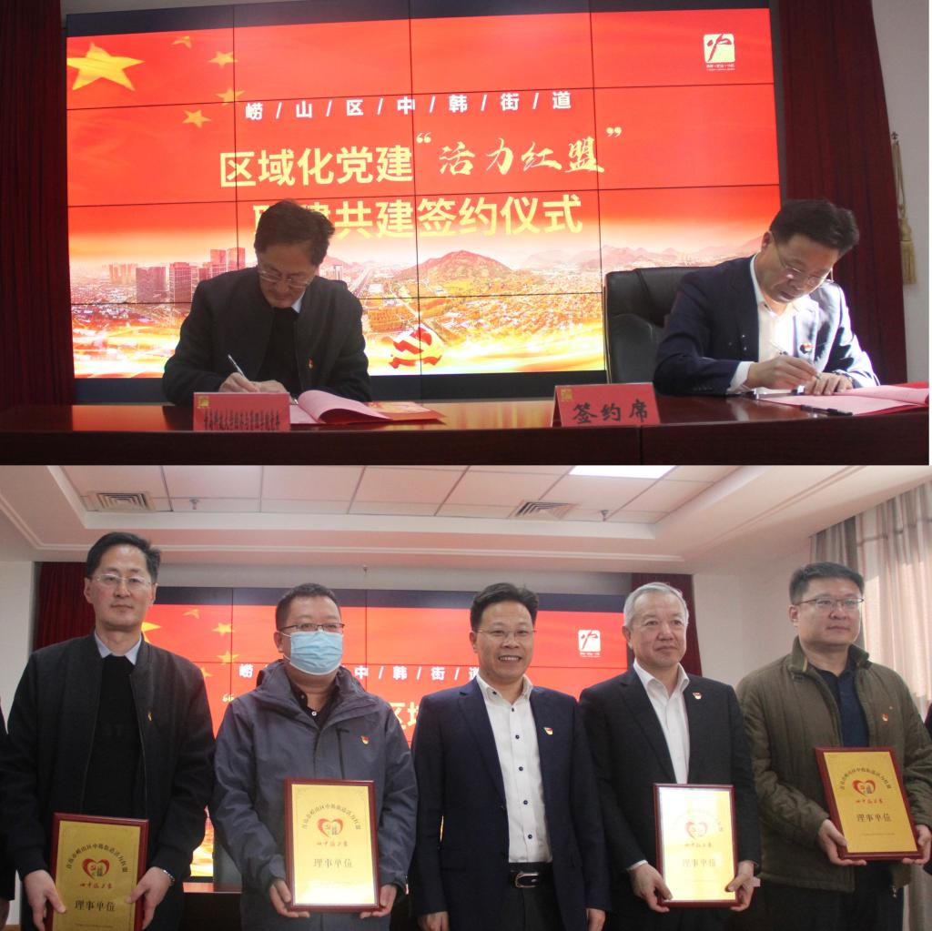 为深入贯彻落实党史学习教育总体要求,推进“我为群众办实事”走深走实,充分发挥高校党组织在推动城市基层党建工作中的示范作用,12月3日上午,mg冰球突破豪华版网址党委书记李德成、城市管理系党支部书记万婕一行,前往青岛市中韩街道开展“活力红盟”区域化党建联席会议暨街道非公有制企业党组织工作会议活动,旨在构建“结对互动、双向促进、共同提升“的党建工作新格局,发挥区域党组织共驻共建共治共享合力。5个党建共建单位代表共同参加签约仪式。