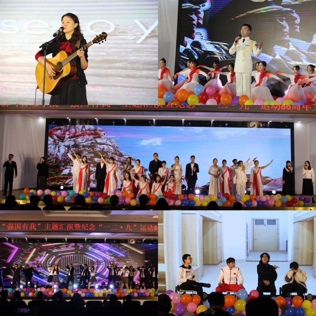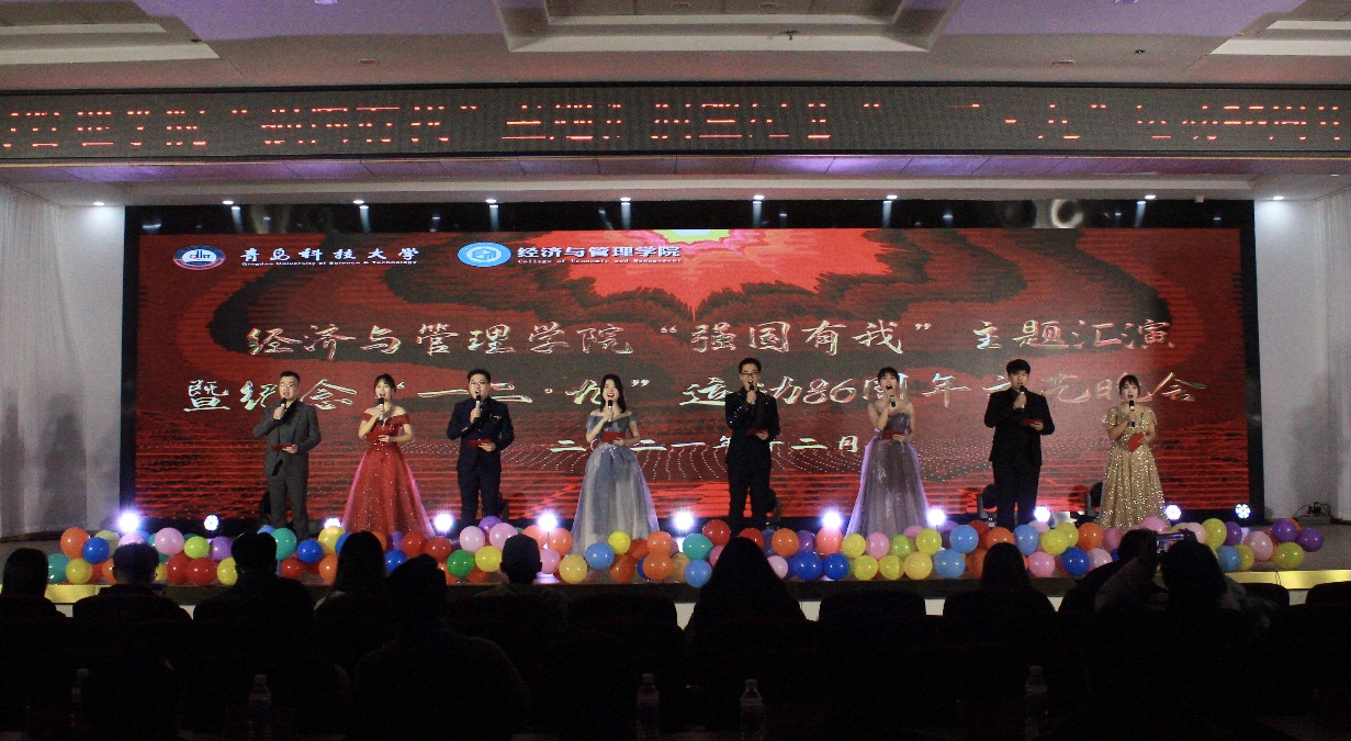 为纪念“一二·九”运动86周年,进一步加强爱国主义教育,激励青年学子担当青春使命、立志成才报国,12月9日晚,mg冰球突破豪华版网址“强国有我”主题汇演暨纪念“一二•九”运动86周年文艺晚会于崂山校区第二报告厅成功举行。mg冰球突破豪华版网址党委书记李德成、副院长宫攀、副院长姜铭出席晚会现场,2021级全体班主任、各兄弟学院学工办(团委)、学生会、研究生会及冰球官网师生欢聚一堂,共同观看了本场晚会。晚会共分为"百年风华,砥砺初心使命"、"百炼成钢,奋斗成就梦想"、"百尺竿头,拥抱崭新征程"三个篇章。