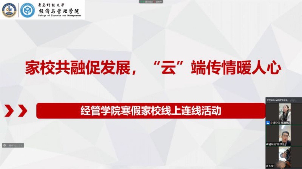 以生为本,精心谋划。学院领导班子高度重视走访工作。线上走访前,学工办专门召开会议研究制定《经管学院2022寒假“云”家访方案》,明确工作思路、确定家访对象、细化家访流程。负责辅导员在走访前详细了解走访学生情况家访任务包含学业帮扶、就业咨询、心理帮扶等多个方面,坚持育人导向,充分发挥家校育人合力,助力学生成长成才。