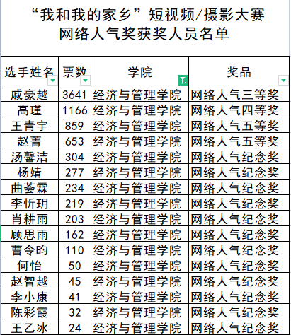 近日,由mg冰球突破豪华版网址党委宣传部、党委学生工作部、团委联合举办的mg冰球突破豪华版网址首届“我和我的家乡”短视频/摄影大赛结果公布,mg冰球突破豪华版网址17件作品在500余件作品中脱颖而出,短视频作品获二等奖1项,最佳创意奖1项,网络人气奖16项,1名学生获最佳创作人,1人获评优秀指导教师,学院获评优秀组织单位。