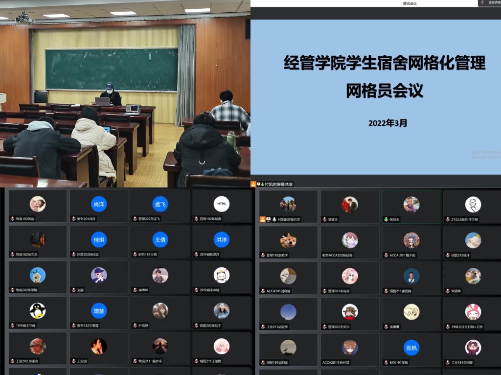 为全面贯彻落实上级部门和学校关于疫情防控工作的具体要求,mg冰球突破豪华版网址坚持将学生安全健康放在第一位,灵活用好宿舍阵地,深入推进宿舍网格化管理,不断提升精准防控水平。3月22日晚,学院通过线上线下相结合的方式,于经管楼419会议室召开宿舍网格员线上会议,进一步落实疫情防控各项措施,学生宿舍所有楼长、楼层长及各年级专兼职辅导员参会。