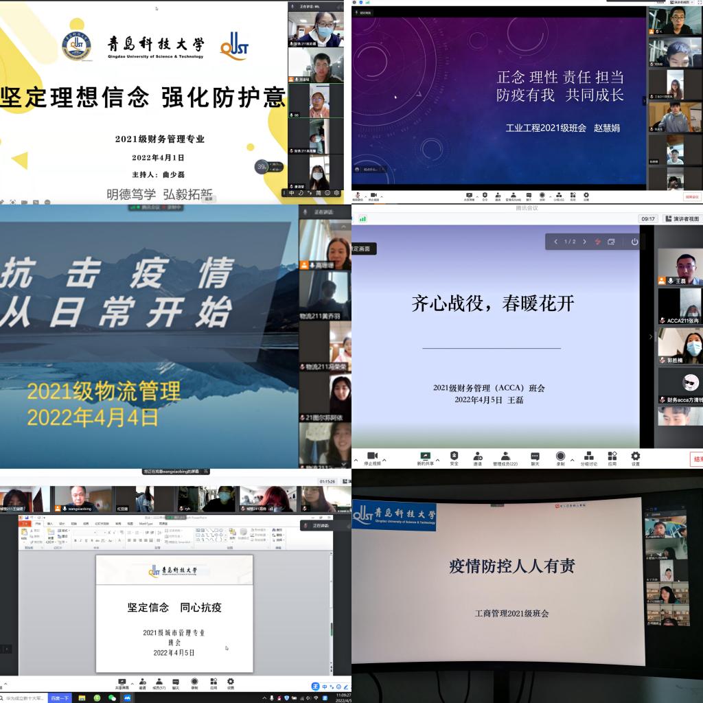 疫情就是命令,防控就是责任。在校园疫情防控关键时期,为贯彻学校、学院防疫要求和部署,坚定学生打赢疫情防控阻击战、遭遇战,筑牢疫情防控的“铜墙铁壁”,4月2日以来,mg冰球突破豪华版网址2021级充分发挥班主任育人作用,组织各专业班主任开展线上班会,各班主任立足相关专业学生特点及工作重点,将疫情防控与思想政治教育相结合,缓解疫情背景下同学们的紧张焦虑情绪,深切关怀学生的身体心理健康和学业状况,引导大家凝心聚力打赢疫情防控战。