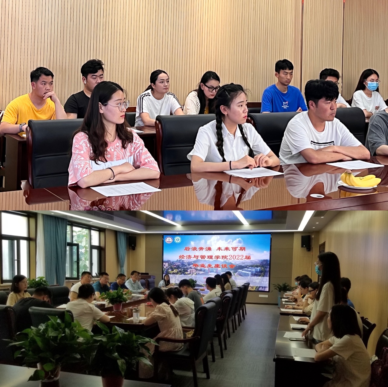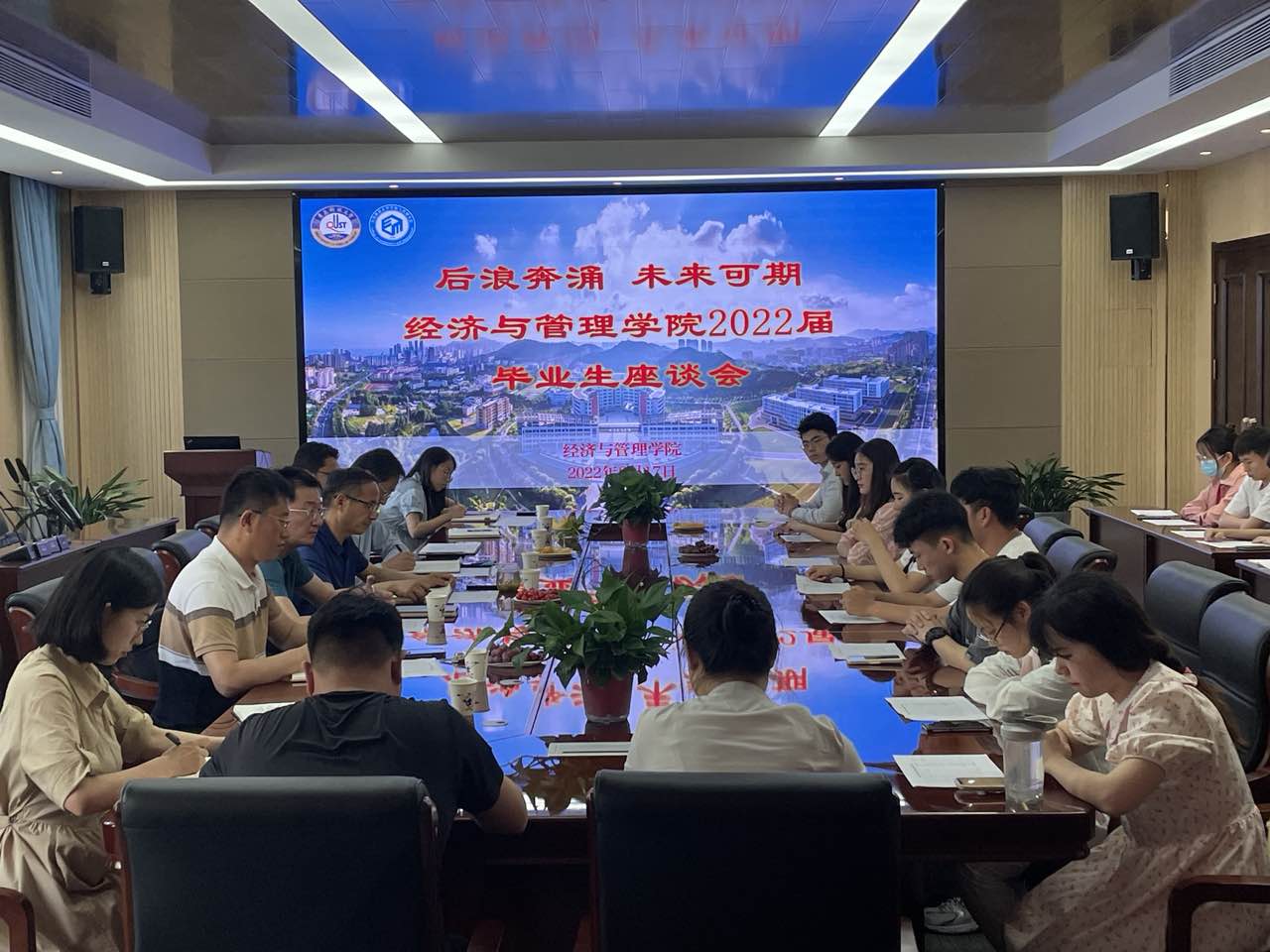6月17日下午,mg冰球突破豪华版网址“后浪奔涌 未来可期”2022届毕业生座谈会在经管楼313会议室举行。学院领导班子成员,毕业班辅导员以及各专业优秀毕业生代表共同参加了此次座谈会。座谈会由2018级辅导员张晓帆主持,进一步增强毕业生追寻梦想、立志成才的责任感和使命感,同时广泛听取学生对学院发展的意见建议。