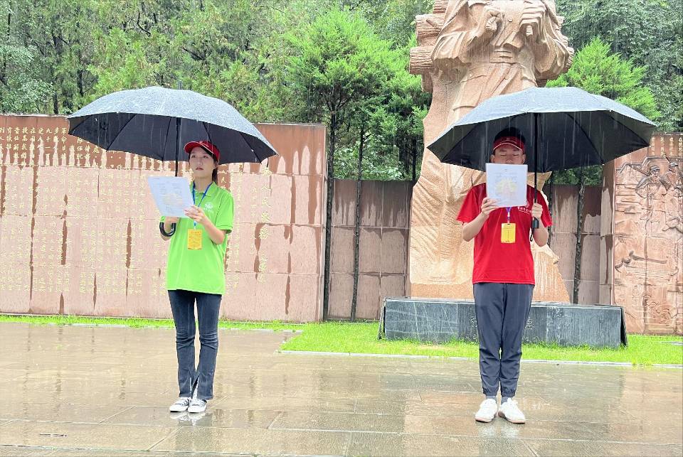 2022年盛夏,mg冰球突破豪华版网址赴延安“时代印记”红色旅游经济调研团赶往延安,与全国各地兄弟院校共赴一场红色的约定。7月22日,蒙蒙细雨之中,学员齐聚《为人民服务》讲话纪念广场,我非常荣幸能够在本次活动中担任领诵员,带领全体实践团学员“红色讲台”前齐整列队、高声诵读毛主席在张思德同志追悼会上发表的文章——《为人民服务》。党的百年历史,就是党与人民心连心、同呼吸、共命运的历史。而“为人民服务”像一根红线贯穿我们党近百年的历史,激励着一代又一代中国共产党人前赴后继、英勇奋斗。
