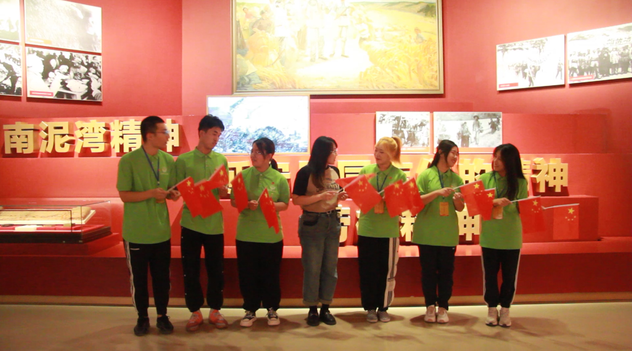 实践团队员在大生产纪念馆跟随着讲解员的介绍,见证了党的峥嵘历史,感受了南泥湾精神的厚重。在这方阳关普照的大地上,在这片生机盎然的田野里,队员们深情唱起了歌曲《南泥湾》,手中的红旗迎风而动,与万里晴空交相辉映,热情歌颂了开荒生产建立功勋的八路军战士,重温了抗战时期大后方军民自力更生、奋发图强的延安精神,帮助同学们深切感悟到如今的幸福生活是在革命先烈的鲜血与牺牲中诞生的,我们应该倍感珍惜,卯足力气,共同实现中华民族伟大复兴的中国梦,建设一个更加强大、美丽的祖国。