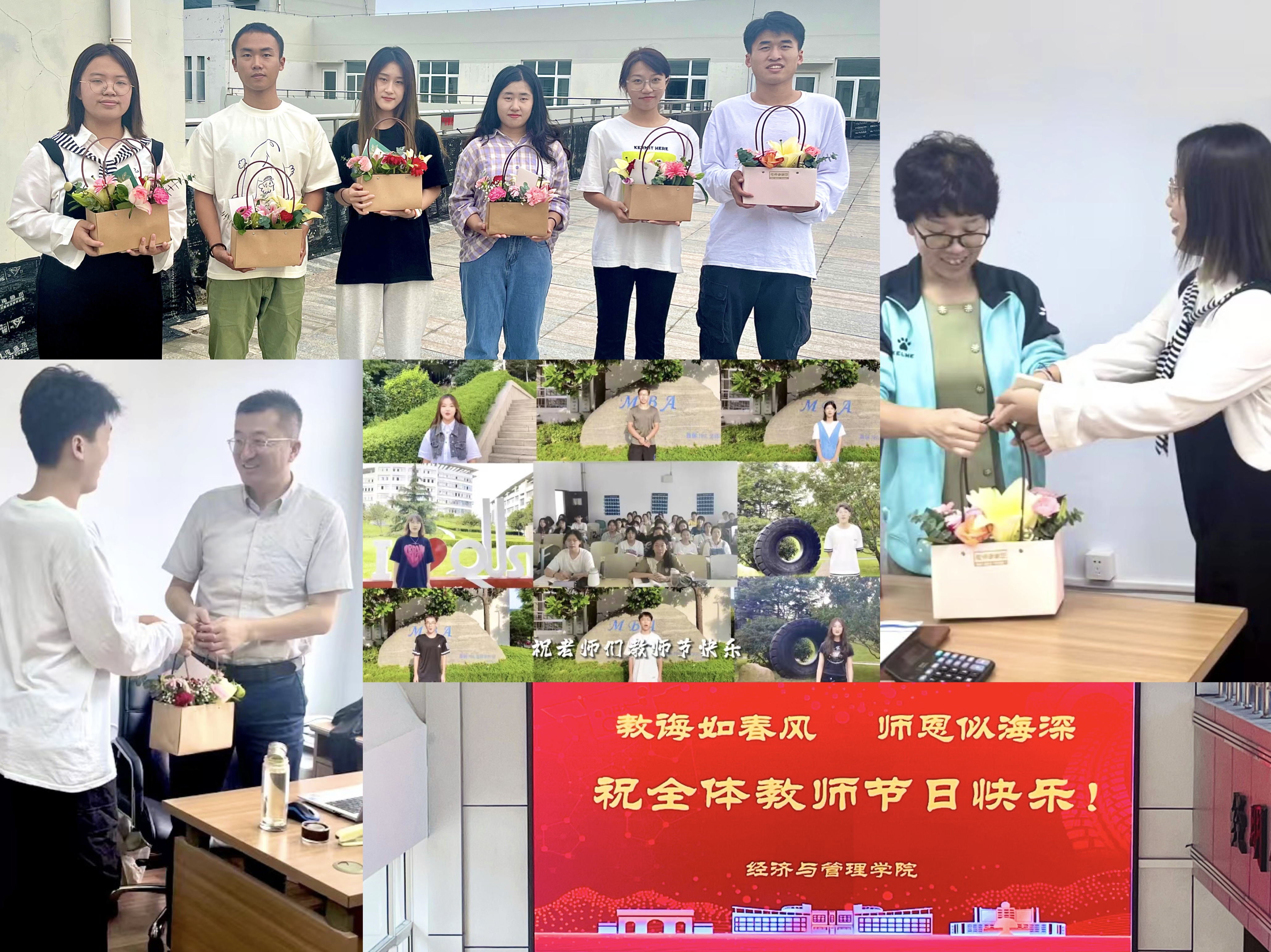 在第38个教师节到来之际,为进一步营造尊师重教的良好氛围,切实提升冰球官网教师的幸福感、责任感、使命感,经管学院围绕“喜迎学校党代会 培根铸魂育新人”主题,点面结合,多措并举,积极举办庆祝教师节系列活动,激励广大教职工以昂扬向上的精神面貌和立德树人的实际行动迎接我校党代会胜利召开。