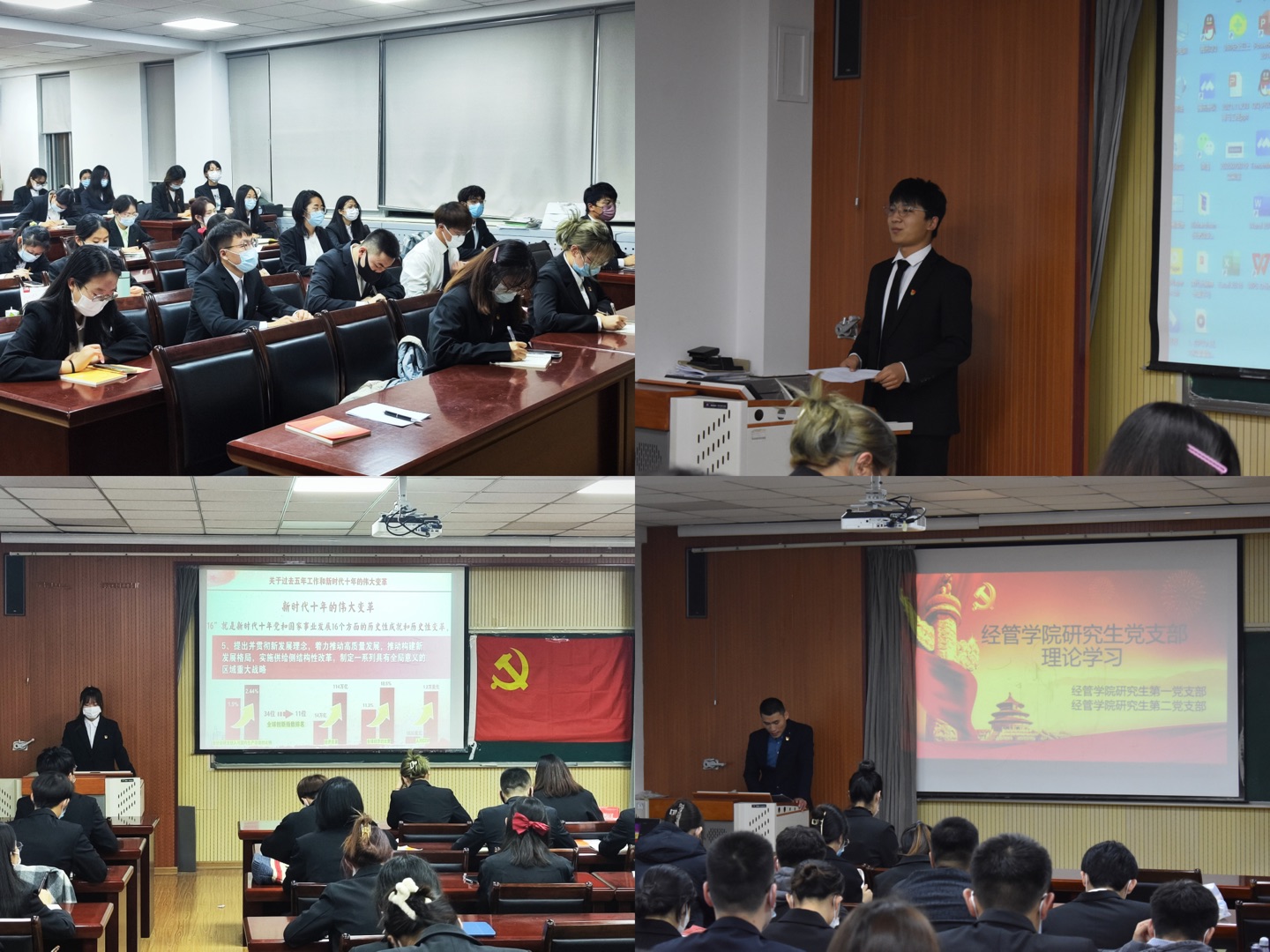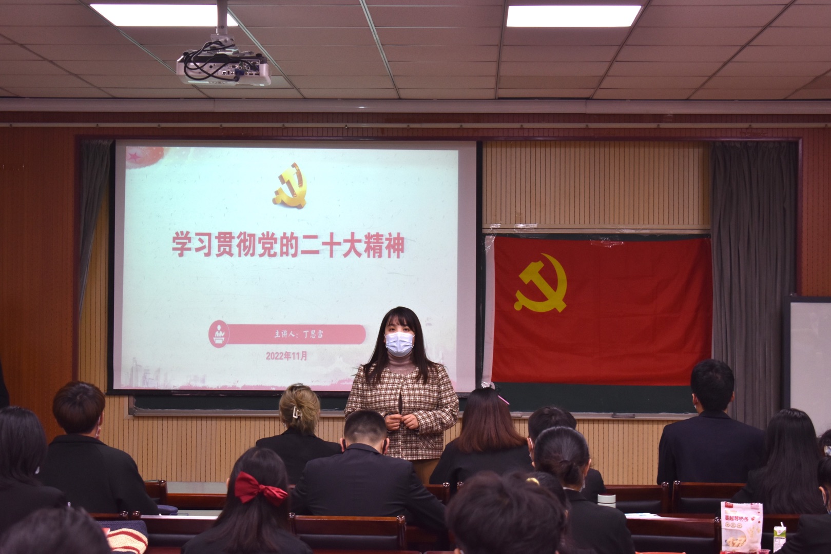 为深入学习贯彻党的二十大精神,引领广大同学在新时代新征程中凝聚共识、踔厉奋发,以青春之力贡献于中国式现代化建设,11月23日晚,mg冰球突破豪华版网址本科生、研究生党支部于经管楼504、505集中学习党的二十大精神。会议由mg冰球突破豪华版网址本科生第二党支部书记张鸣主持,全体本科生研究生党员参与会议。
