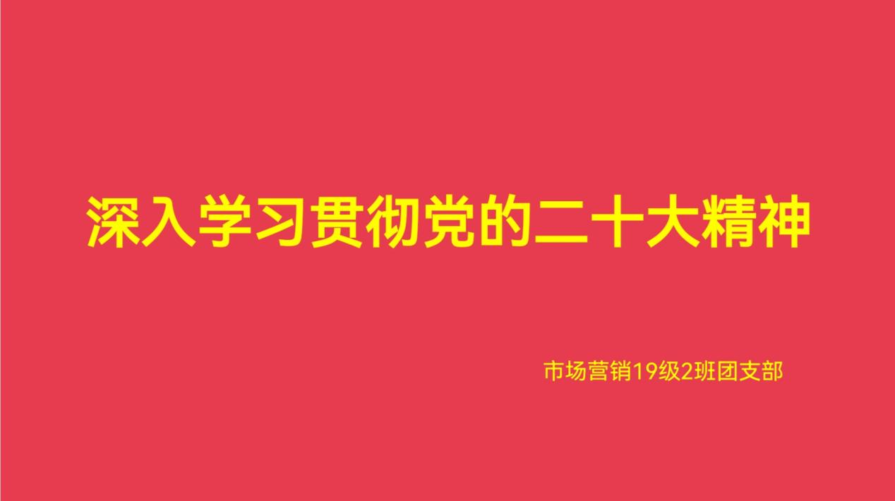 为庆祝中国共产党第二十次全国代表大会胜利召开,深入学习贯彻习近平新时代中国特色社会主义思想,切实提高大学生思想政治素养,引导青年学子听党话、跟党走、感党恩,将爱党爱国爱校的热情投入到学习和生活中去,mg冰球突破豪华版网址市场营销192团支部开展深入学习党的二十大精神主题团日系列活动,多形式、多渠道宣传党的二十大精神,营造出浓厚的学习宣传氛围。