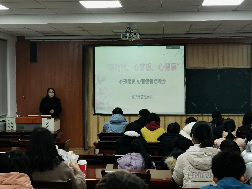 为完善mg冰球突破豪华版网址心理健康服务网络建设,充分发挥朋辈大学生群体自助、助人的功能,进一步加强心理健康教育工作,全面了解大学生心理健康状况,12月6日下午,mg冰球突破豪华版网址于经管楼419组织开展了“新时代、心梦想、心健康”22级心理委员培训会,培训会由学院心理工作站站长付凯主讲,22级心理委员以及心音使者参加了此次培训会。