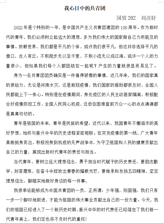 为更好践行团员使命,庆祝建团100周年,增强团员对团史学习的兴趣,mg冰球突破豪华版网址学生会开展“我心目中的共青团”主题征文比赛。学院学子积极参与,共收集作品200余份,并借此机会,抒发内心中对共青团的敬爱之情。