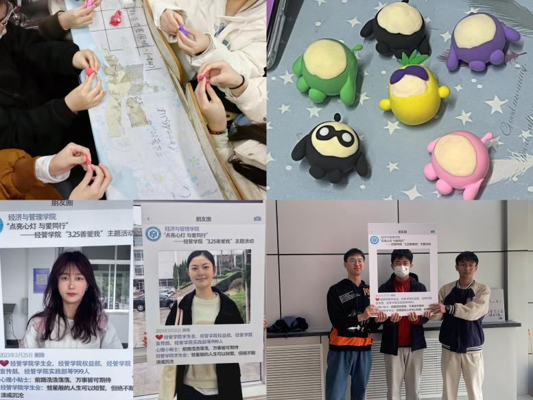 “善意温暖,守望相助”黏土创作活动中,同学们充分结合本次活动的主题要素,发挥自主创新意识、应用创新实践能力,将无法触及的内心世界转化成有形的艺术作品,在活动过程期间,同学们相互指导相互治愈,善意与温暖在你我他之间传递。“循梦而行,向阳而生”相框拍照活动中,师生一同在经管楼大厅和印有“点亮心灯,与爱同行”活动主题的相框合照,本次活动提供了教师与同学的面对面交流的平台,拉近师生间的距离,有效减轻学生的心理压力,有利于促进本院大学生心理健康成长。