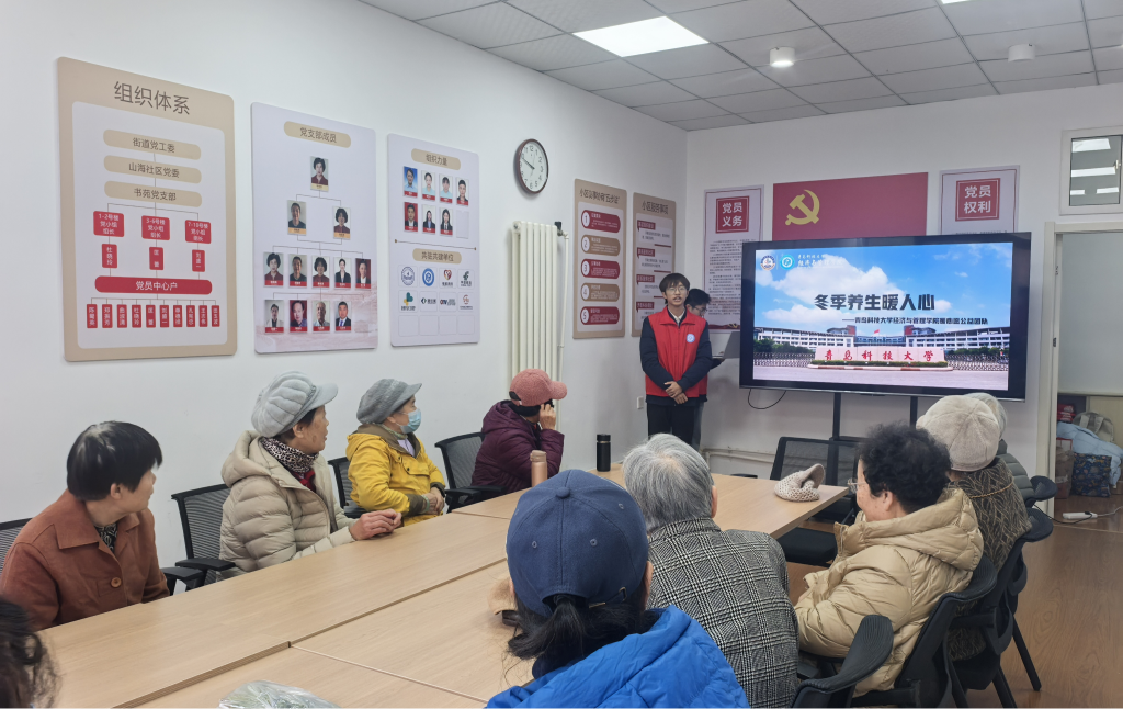 为响应健康中国建设和“百万大学生进社区”号召,切实满足社区居民冬季养生保健需求,让实用养生知识走进社区、惠及群众,11月22日,mg冰球突破豪华版网址mg冰球突破豪华版网址暖心愿公益团队走进青岛市崂山区山海社区开展“暖冬养生行,健康伴你行”养生科普志愿实践活动,将防寒保暖、饮食调理、慢病预防等干货内容与互动实操相结合,为社区居民送上一份贴心的“冬季健康指南”。