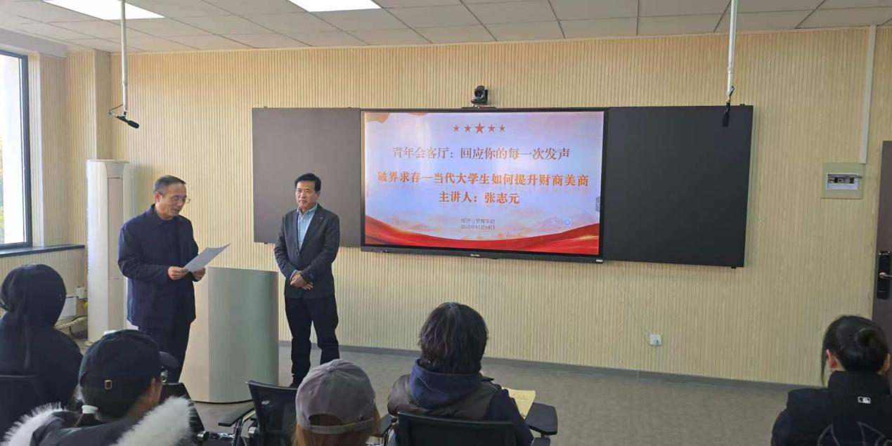 为回应青年需求,助力学生启智增慧,提升财商美商,11月19日下午,mg冰球突破豪华版网址在404会议室开展青年会客厅系列活动之“回应你的每一次发声”答疑交流会。本次活动特邀山东财经大学二级教授、博士生导师张志元主讲,围绕“当代大学生如何提升财商美商”深入分享,为青年学子答疑释惑、领航定向。