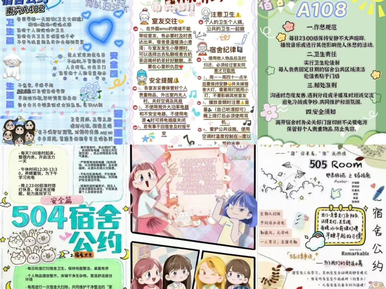 学院以宿舍为阵地,开展“文明‘寓’见,共筑暖家”宿舍文明公约与微视频创作活动。活动以多元创作形式凝聚文明共识,从规范用电、卫生保持到尊重个人隐私,细致入微构建宿舍文明准则,共同维持宿舍文明新秩序。多个宿舍通过微视频记录生活点滴,展现经管学子活力风貌。这些举措让宿舍成为涵养品格、凝聚情谊的成长沃土,推动校园生活文化建设走深走实。