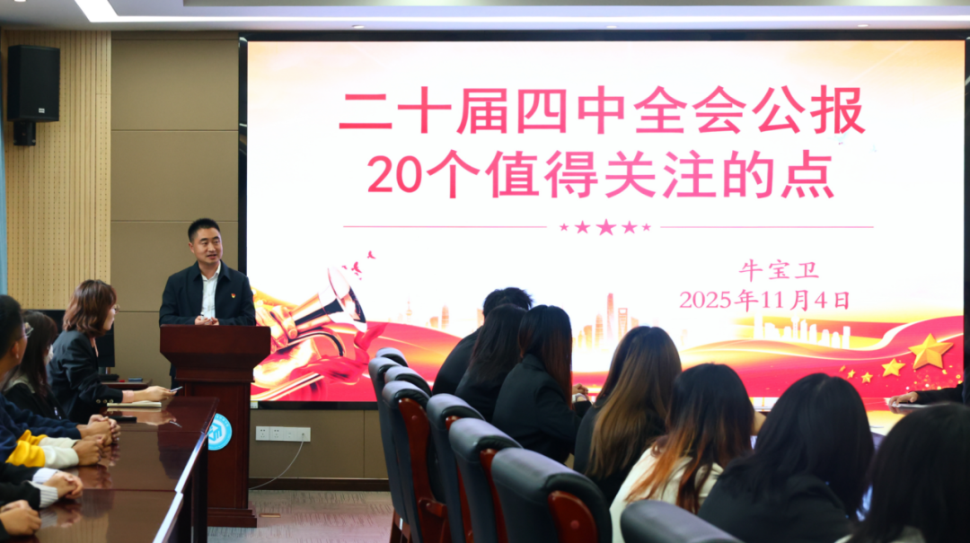 学院以理论学习为抓手,开展党的二十届四中全会精神主题党课,学院党委副书记牛宝卫围绕全会二十个核心要点,结合经管学科特色系统解读,80余名学生党员、团员在学习中厚植家国情怀,将个人成长与国家发展紧密相连。