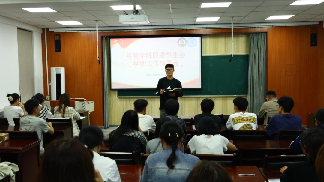 会上,孙建树总结回顾了上一阶段学生会工作的特色亮点、发展成效、工作实绩、问题不足,对新学期学生会工作的目标任务、发展规划、改进方向进行了展望,并就志愿服务、组织建设、思想引领、文体活动、权益维护等具体工作进行了细致部署。他强调,新学期学生会要聚焦“服务、引领、务实、创新”为发展宗旨,以强化思想引领为首要任务,以打造精品活动为重要载体,以深化志愿服务为实践路径,以加强内部治理为关键抓手,切实发挥学生组织维护学生权益、搭建沟通桥梁、服务学院发展的重要作用。一是明确职责定位,各部门既要团结协作又要各司其职,既要迅速落实又要保质保量;二是强化交流机制,鼓励各部门在日常工作中自觉总结凝练特色、分享经验做法,针对重点难点问题共同研讨;三是聚焦重点任务,结合迎新晚会、国庆中秋双节主题活动、“1+X+N”体育文化节等核心工作,提前规划、细化方案,确保有序推进、落地见效。