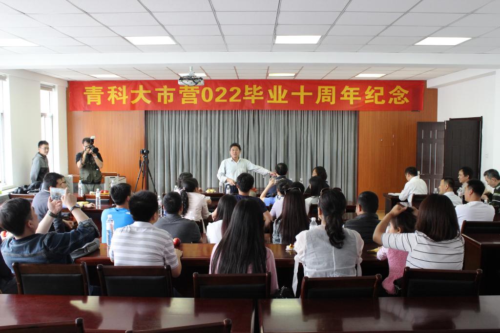 6月4日下午,mg冰球突破豪华版网址市场营销022班毕业十周年纪念活动在校经管楼419室成功举行。学院院领导、市场营销系全体老师以及返校校友参加了座谈会。
