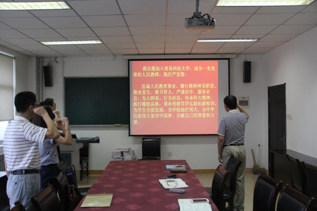 为了加强教师师德建设,切实增强新进教师教书育人、为人师表的责任感、使命感和荣誉感,根据人事处下发的《关于组织开展教师宣誓活动的通知》的部署要求,学院于9月6日下午在经管楼415教室隆重举行了新进教师宣誓仪式。院长王志宪、党总支书记丛海燕和新进的六名教师参加了宣誓仪式。