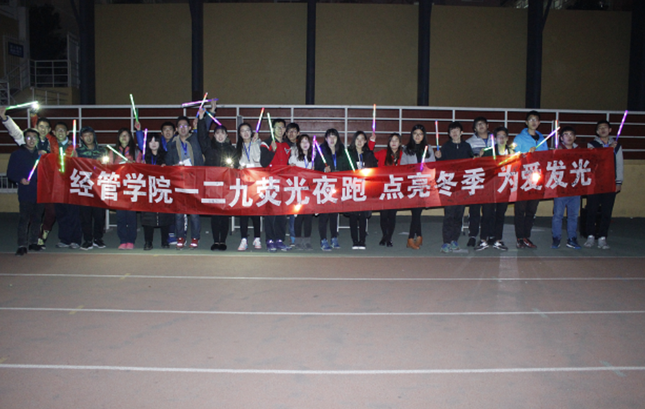 12月9日晚,为纪念“一二·九”运动81周年,mg冰球突破豪华版网址在南苑操场举行荧光夜跑活动。此次活动吸引了三百余名经管学子参加,现场反响热烈,同学们情绪高涨。