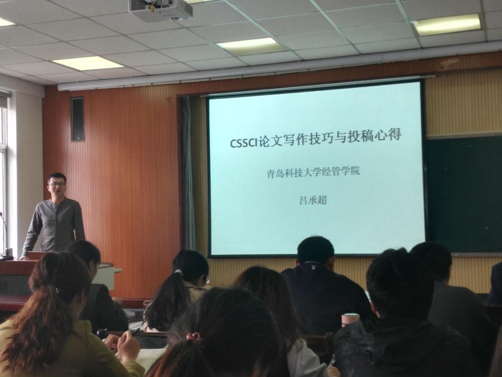 随后,mg冰球突破豪华版网址教师吕承超作了题为“CSSCI论文写作技巧与投稿心得”的报告。吕老师把本次报告内容演化为经济学理论,用“消费者理论”说明投稿时注意学科分类的重要性;用“厂商理论”介绍了好文章应满足的条件;用“均衡理论”展示了文章质量与供需之间的关系。他强调要写好文章应多看、多读、多思、多写,这样才能达到“不战而屈人之兵”的效果。