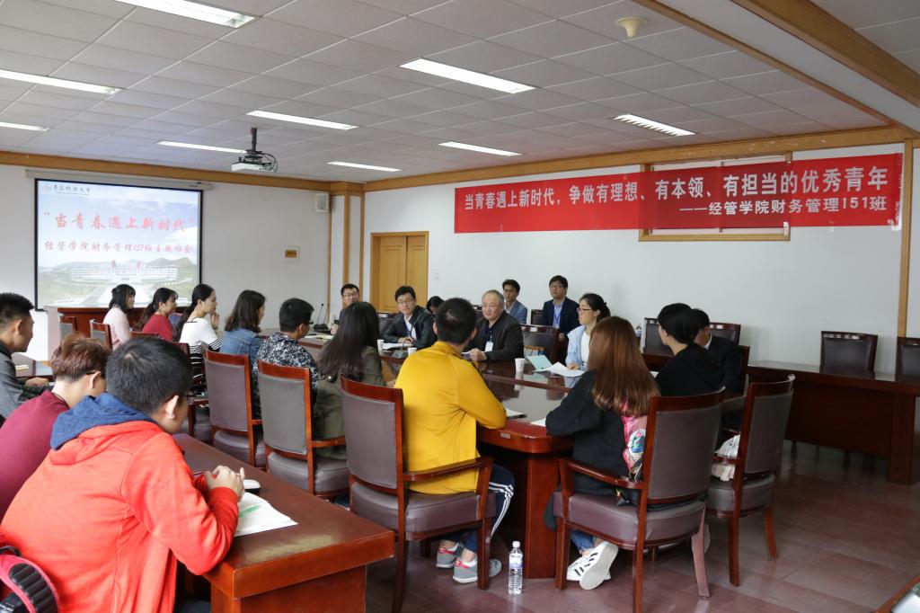 刘兴云认真听取大家的发言,并不时与大家交流看法,对财务管理151班团结奋进、积极上进的班级风貌表示赞赏,并期望班级同学在以后的发展中取得更大成绩。他对同学们学习生活实践中遇到困惑提了合理建议。