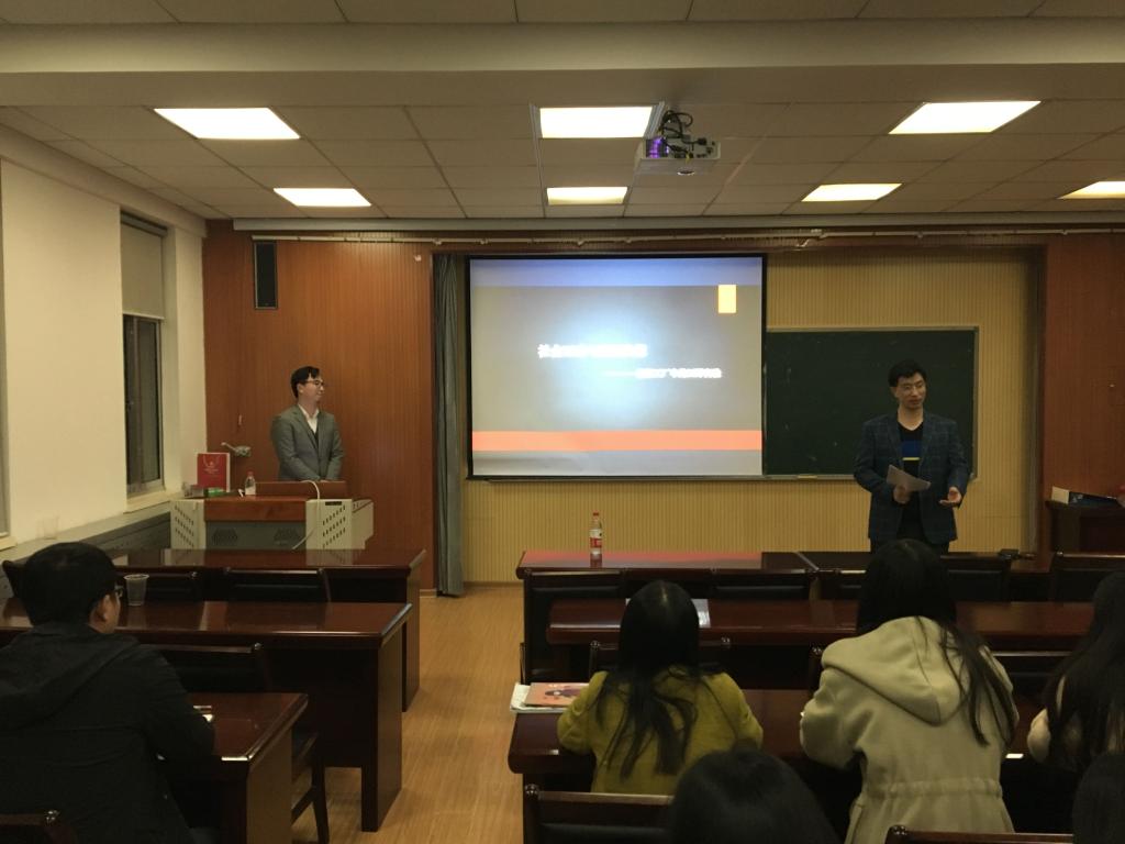 11月4日,mg冰球突破豪华版网址邀请海归博士王晟哲在经管楼419室作题为“空间计量前沿”讲座。学院2016级全体学术型硕士及部分老师参加。讲座由学院副院长杨友才主持。