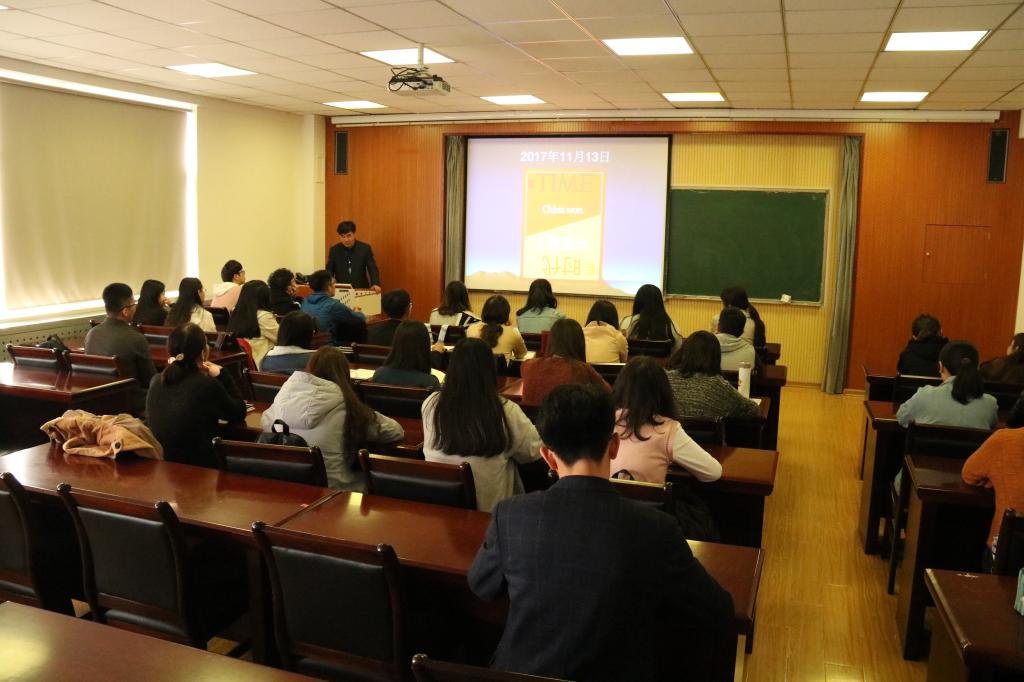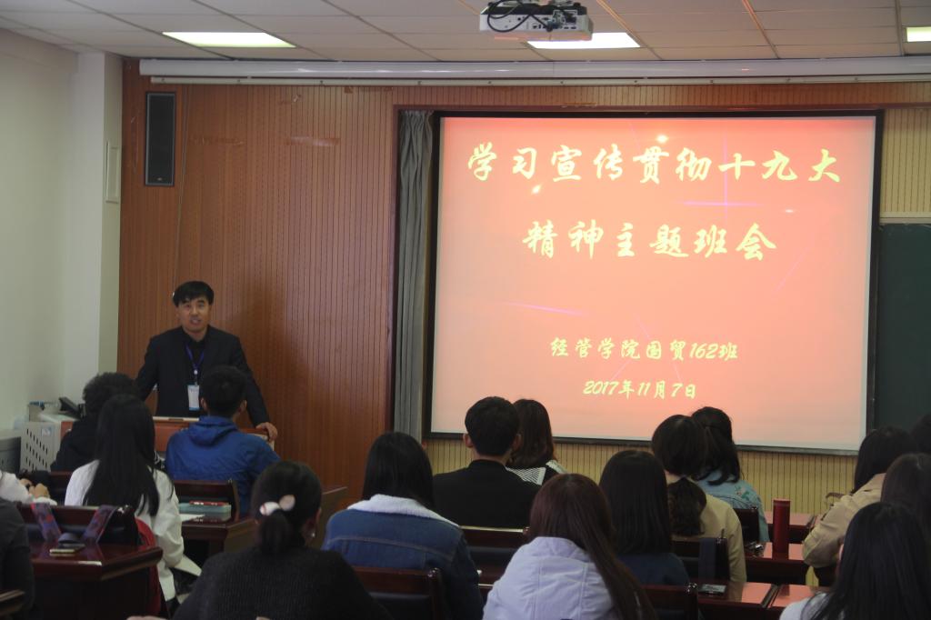 11月7日,mg冰球突破豪华版网址党总支书记聂法良走进联系班级国贸162班,参加“学习宣传贯彻十九大精神”主题班会。与同学们共话当代大学生如何以实际行动学习宣传贯彻十九大精神,畅谈新时代大学生的理想目标。