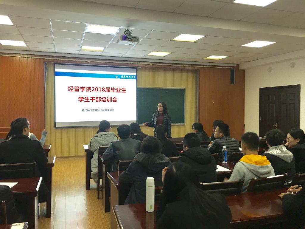 11月22日,mg冰球突破豪华版网址在419会议室召开2018届毕业生学生干部培训会。活动以学习宣传贯彻党的十九大精神,深刻领会“创新驱动发展”精髓,落实毕业生就业择业技能教育为主题展开。学院分团委书记兼2014级辅导员李雯雯、全体2018届毕业生党员以及学生干部参加了此次会议。