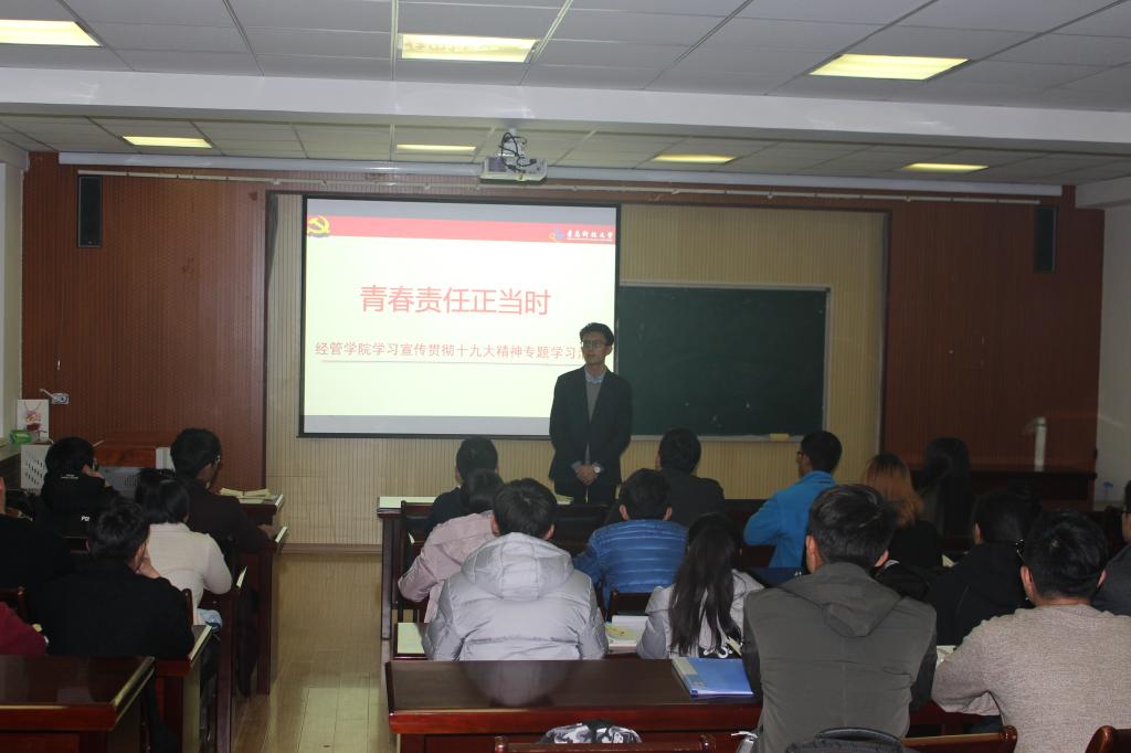 11月26日,mg冰球突破豪华版网址在419会议室召开2017级学生干部培训会暨养成教育专题学习会。会议以“学习宣传贯彻党的十九大精神,青春责任正当时”为主题展开,以提升学生干部责任意识和纪律观念,增强学生干部的工作能力。2017级辅导员张显全、王景雯及主要学生干部参加了此次会议。