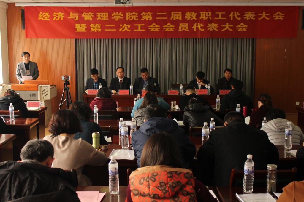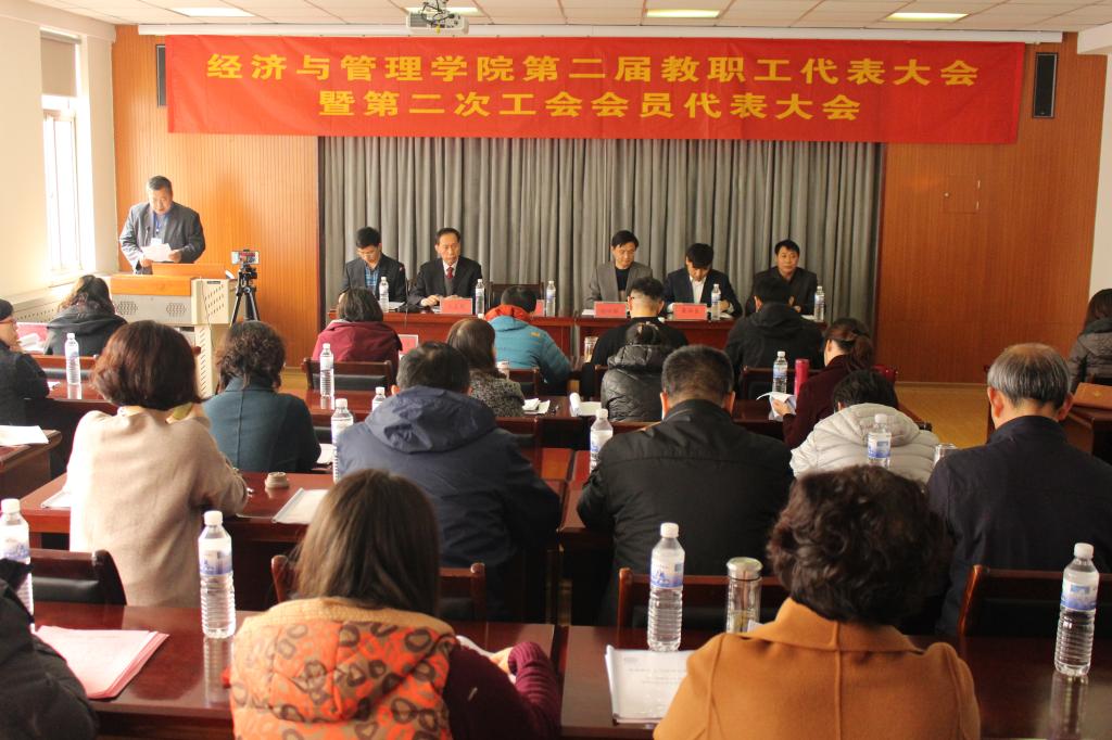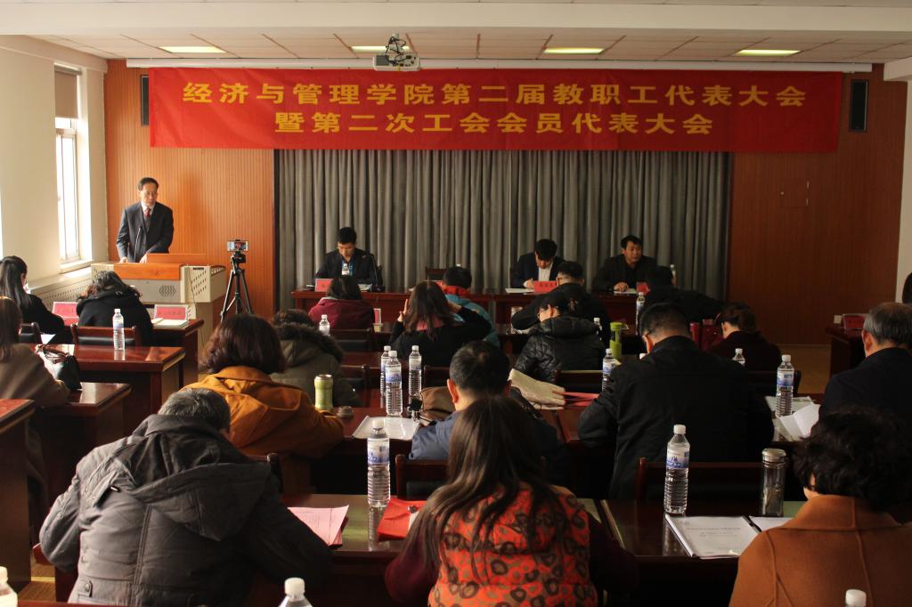 12月29日下午,mg冰球突破豪华版网址第二届教职工代表大会曁第二次工会会员代表大会在崂山校区经管楼419会议室举行。校党委副书记张元利,校工会主席郭曰铎,mg冰球突破豪华版网址党政负责人等出席大会。双代会代表39人参加了会议,大会由副院长杨友才主持。