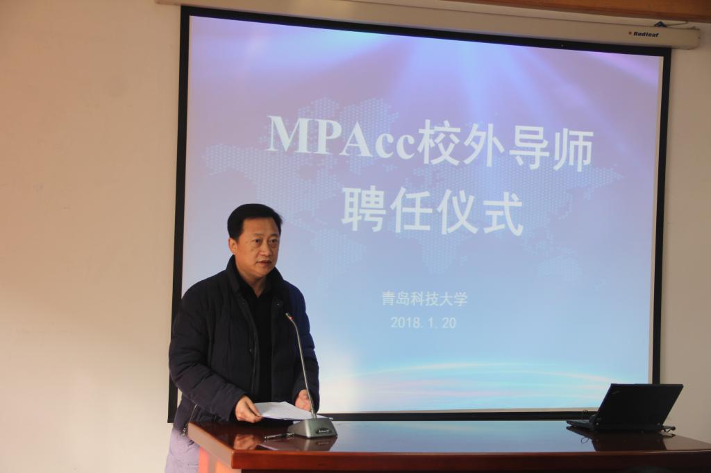 信永中和会计师事务所青岛分部总经理宋进军代表MPAcc校外导师发言。他表示能够受聘于mg冰球突破豪华版网址MPAcc校外导师倍感荣幸与压力,一定不辜负学校的信任,认真履行导师职责,圆满完成学校交给的各项任务。我校2017级MPAcc学生李金宝代表全体在校MPAcc学生发言,倡议全体MPAcc学生充分把握与校外导师交流沟通的机会,不断提升自身素质能力,成为优秀的MPAcc毕业生。