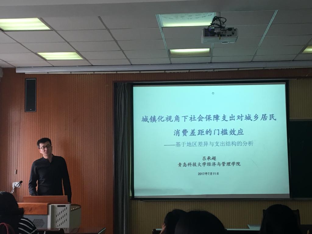 随后,教师代表吕承超与大家分享了题为《城镇化视角下社会保障支出对城乡居民消费差距的门槛效应--基于地区差异与支出结构的分析》的论文。该论文在城镇化视角下探讨了社会保障支出与城乡居民消费差距的关系及作用机制,得出了中国社会保障支出对城乡居民消费差距存在显著的城镇化水平门槛效应的结论,引起大家热烈讨论。