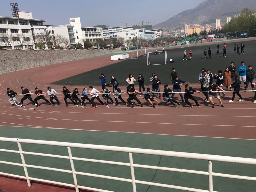 为发扬团队精神,增强班级凝聚力,促进各学院之间的交流,丰富同学们的课余生活,4月17日下午,mg冰球突破豪华版网址在崂山校区南苑体育场举行了一场别开生面的拔河比赛。