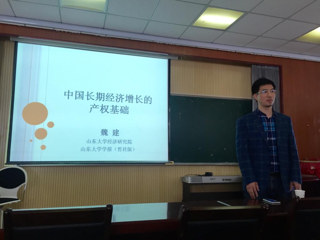 5月4日下午,山东大学魏建教授专题讲座在mg冰球突破豪华版网址419会议室顺利举行,部分教师代表及全体研究生参加了此次讲座,讲座由副院长杨友才教授主持。