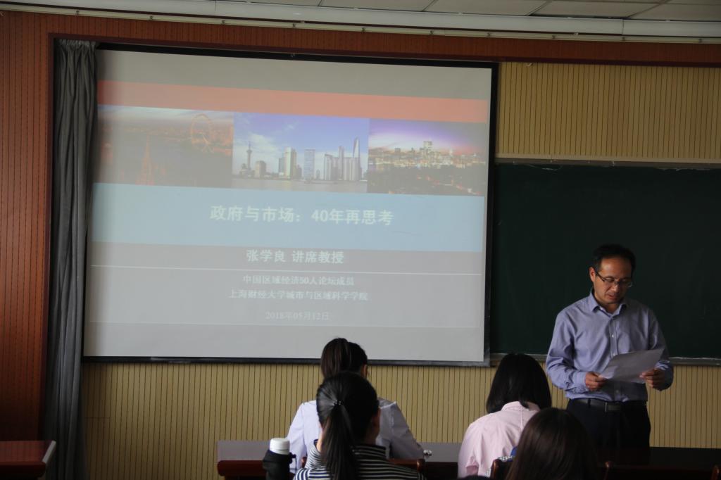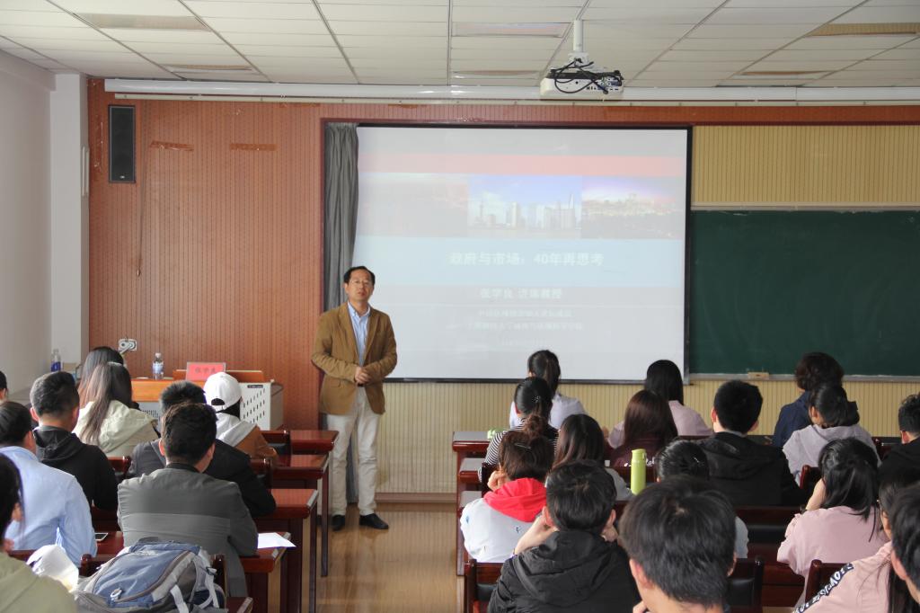 首先,学校人文社科处处长李勋来教授就张学良的个人情况向全体师生做了简要介绍。接下来,张学良做了题为《政府与市场:40年再思考》的专题报告。报告围绕稀缺资源的空间配置、国内“飞地经济”模式等方面展开讲解。他提出的培育四新经济,形成新动能;以四新经济带动旧动能提升;旧动能空间上承载腾笼换鸟等观点吸引了在场师生的强烈兴趣,引起大家的热烈讨论。最后,学院教师代表刘树艳教授对本次报告做了简要总结并表达了自己的观点。