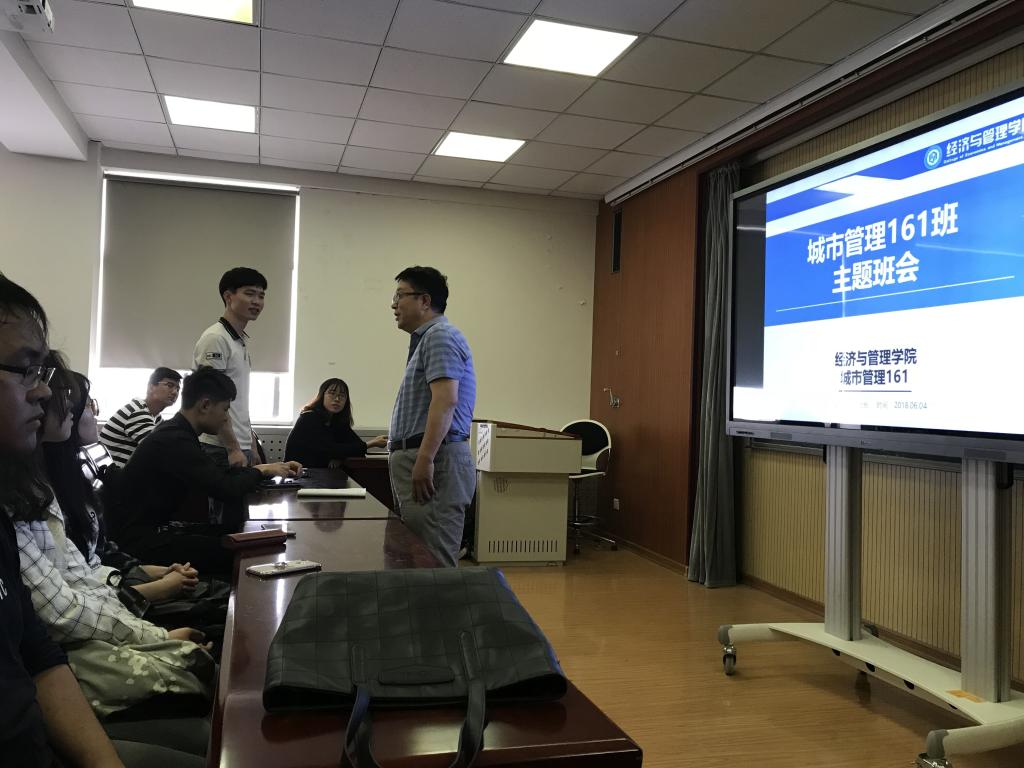 6月4日,校纪委副处级纪检员傅进走进联系班级,参加mg冰球突破豪华版网址城市管理161班主题班会,与青年学生共话学校发展、共享发展成长。
