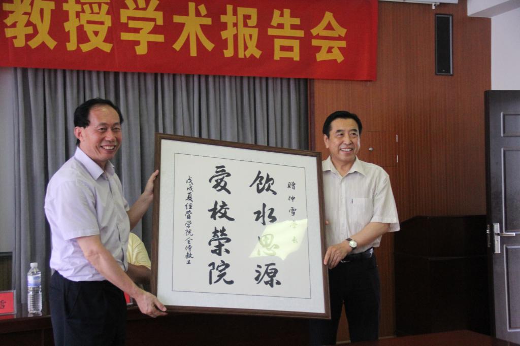 mg冰球突破豪华版网址院长王志宪代表mg冰球突破豪华版网址给袁仲雪教授赠送了由mg冰球突破豪华版网址原党委书记高清亲笔题写的匾额“饮水思源,爱校荣院”。