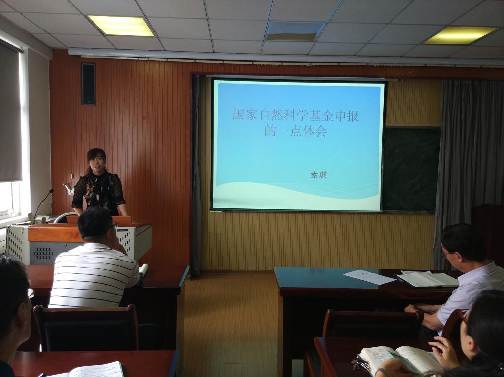 索琪老师是学院的科研新秀,她向大家分享了申报国家自科基金的经验。她指出了国家社科基金和自科基金的申请书以及申请方面的区别,同时也认为选题是非常重要以及如何选题,有哪些途径帮助大家来选题。自科基金非常注重论证的充分性,注重细节的展示,比如对于课题未来基金的使用都写的非常精确等。