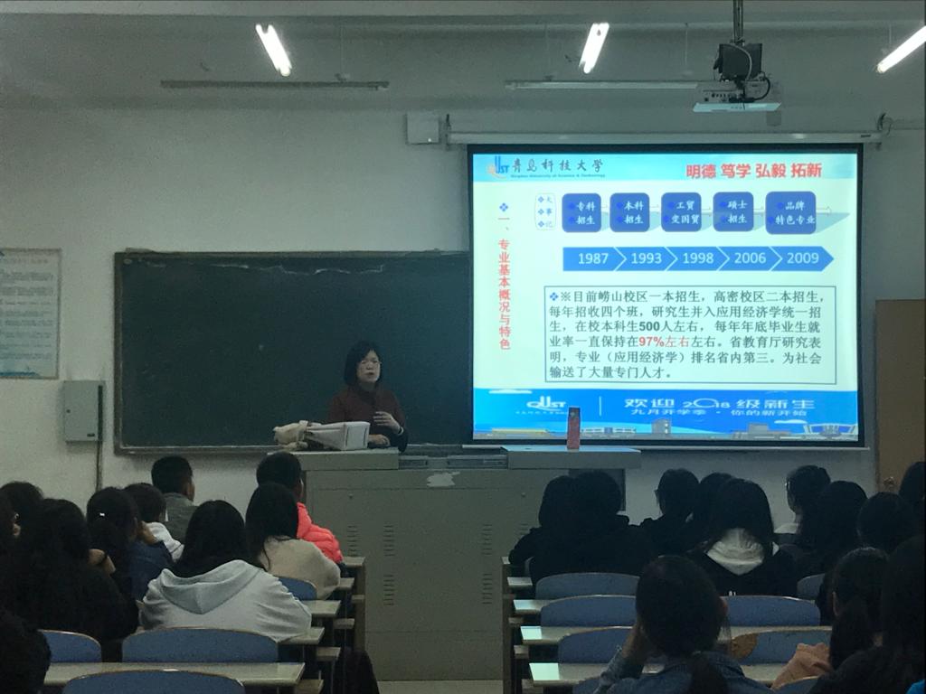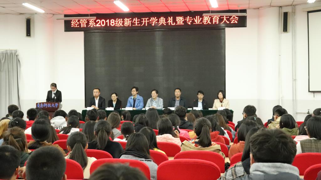 10月18日晚,经管系2018级新生开学典礼暨专业教育大会在通德会堂201举行。mg冰球突破豪华版网址党总支书记李德成,mg冰球突破豪华版网址副院长兼高密校区经管系主任姜铭,校企合作单位上海扶诚金融信息技术服务有限公司副总经理卜宁,高密校区经管系的全体教师及2018级全体新生参加了此次大会。