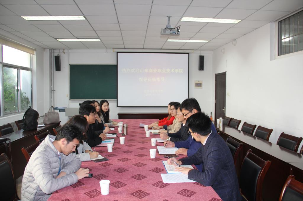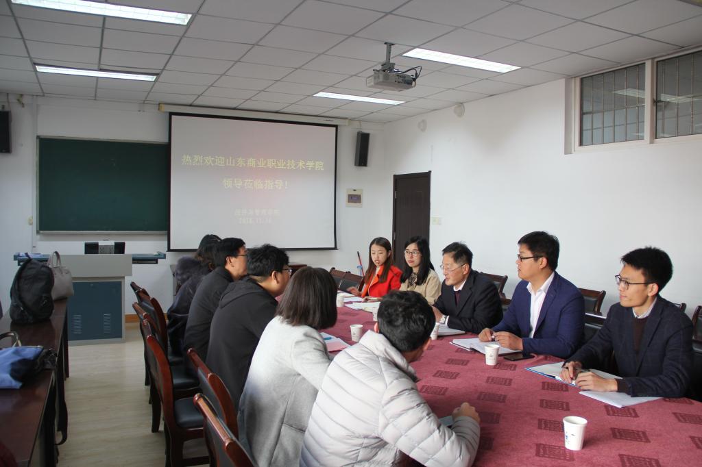 11月16日,山东商业职业技术学院一行6人来访mg冰球突破豪华版网址,就党建、学生教育管理、创新创业教育、宣传等工作进行了交流,mg冰球突破豪华版网址党总支书记李德成、分团委全体专职辅导员参加了会议。