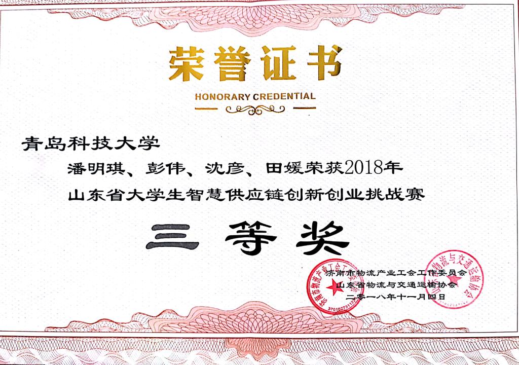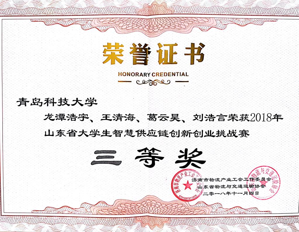 近日,2018年首届山东省大学生智慧供应链创新创业挑战赛在山东财经大学举办,mg冰球突破豪华版网址物流管理专业16级学生组成的两支参赛队伍分别荣获三等奖,展现了青科大学子的风采。