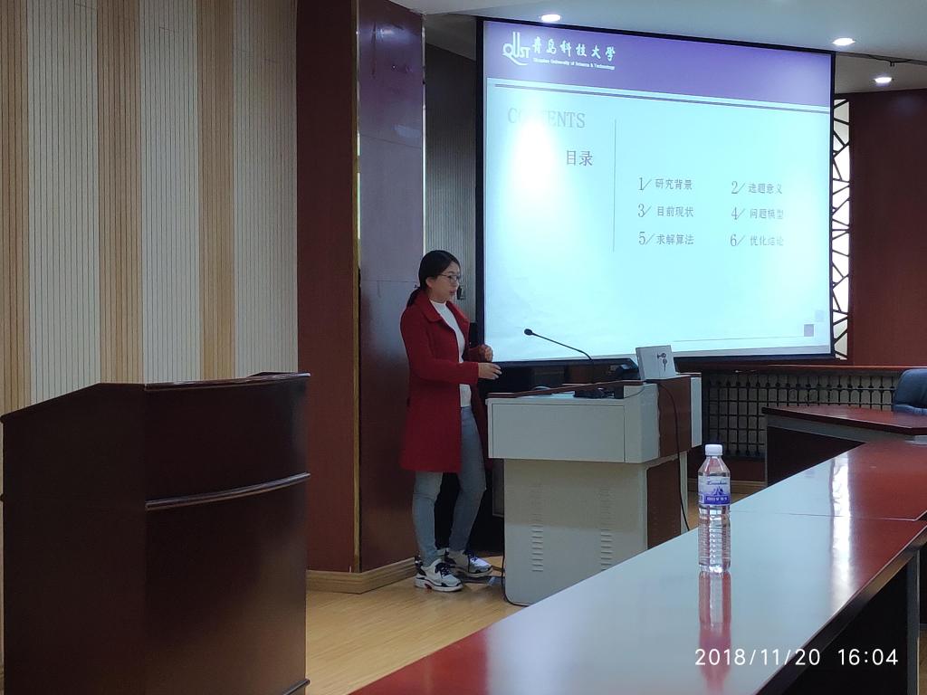 随后,冰球官网物流管理系王艳婷博士分享了其目前的一篇研究论文《随机动态环境下项目进度计划与控制》。王博士从研究背景、选题意义、目前现状、问题模型、求解算法和优化结论六个方面具体阐述了研究主题。王博士认为采用前摄-反映的调度方式制定项目计划非常有必要,一方面可以监控项目计划实施的情况,另一方面又可以提高基准进度抗风险的能力,提高资源运用效率。