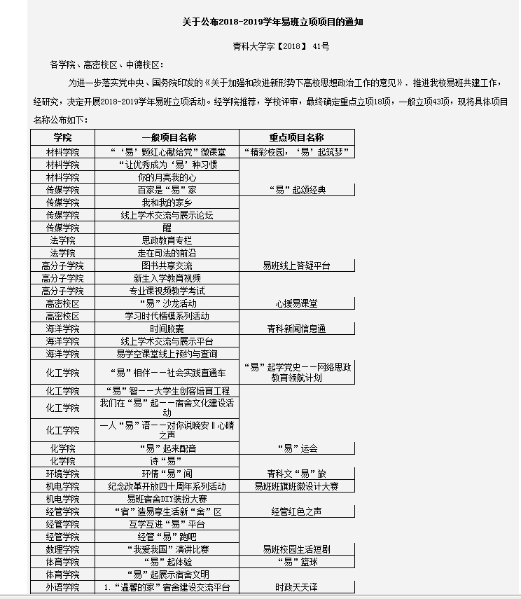 为进一步落实党中央、国务院印发的《关于加强和改进新形势下高校思想政治工作的意见》,推进易班共建工作,近日,学校开展2018-2019学年易班立项活动。经学院推荐,学校评审,最终确定重点立项18项,一般立项43项,mg冰球突破豪华版网址报送的项目“宿”造易享生活新“舍”区、互学互进“易”平台、经管“易”跑吧获批一般立项,项目经管红色之声获批重点立项,取得3个一般立项,1个重点立项的好成绩。
