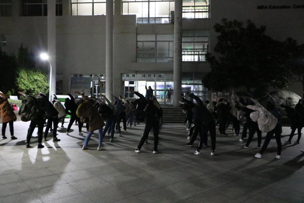 为积极备战校广播操大赛,展现经管学子朝气蓬勃的昂扬风貌,3月24日晚上,mg冰球突破豪华版网址广播操队在弘毅广场开始了第五次训练。