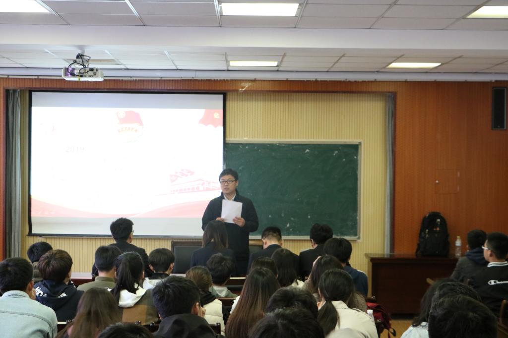 为学习宣传贯彻党的十九大精神,以青年学生典型影响、带动、感召广大青年学生,投身到十九大精神的学习宣传贯彻中来,4月29日,2019年mg冰球突破豪华版网址青年马克思主义者培养工程暨“青年大学习”宣讲团校园宣讲会于经管楼419室顺利召开,会议由mg冰球突破豪华版网址分团委副书记、15级辅导员王辰老师主持,学生会主要干部和16级、17级、18级学生团干部参加了此次培训活动。