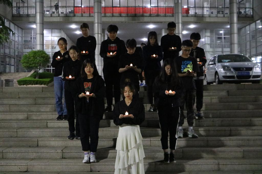 对话汶川,声声诵读共缅怀。5月12日,学生骨干来到弘毅广场,在主持人的带领下,全体默哀,深切缅怀地震罹难者和英勇献身的抗震救灾英雄。默哀结束,学生代表城管171班高威、物流172班张萌欣、营销172班马锦昊和营销162班解文文带来诗朗诵《生死不离》。字字铿锵,句句深情,朗诵引起了同学们强烈共鸣。工业181班周星灿表示:"中华民族历来具有在艰难困苦中不屈不挠、团结奋战的光荣传统,不论多大的灾难,都压不弯她挺拔的脊梁。作为新时代的青年,我们要传承好民族精神,在奋斗中为实现中华民族伟大复兴的中国梦贡献力量。”