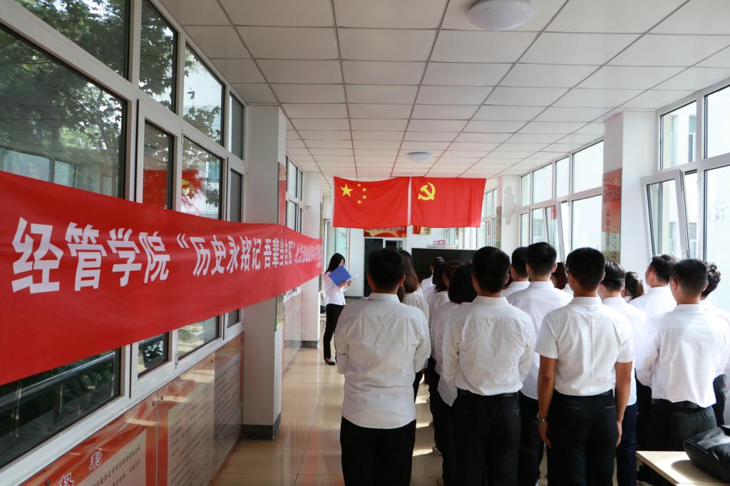学院借助微信公众号、QQ公众号、易班等多媒体平台推出“勿忘国耻 振兴中华”三行诗征集、“我是护旗手,我与国旗同框”照片征集、“铭记抗战历史 传承红色基因”我最喜爱的抗战英雄分享会、“我与祖国共生长”我出生那年的祖国记忆、“重温‘爱国三问’ 传承爱国精神”爱国知识大比拼等活动,时刻提醒青年学子不忘先辈们艰苦奋斗的历程,传承红色基因。线上与线下活动的融合,为广大学生和党员提供了丰富多彩的红色知识交流平台,引导青年学子在新时代讲好青年故事。